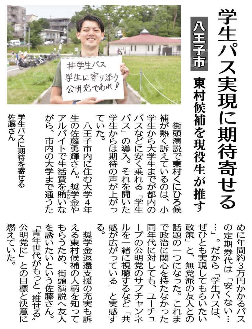 本日の公明新聞の7面にて、重点政策「学生パス 」への期待の声を掲載していただきました。