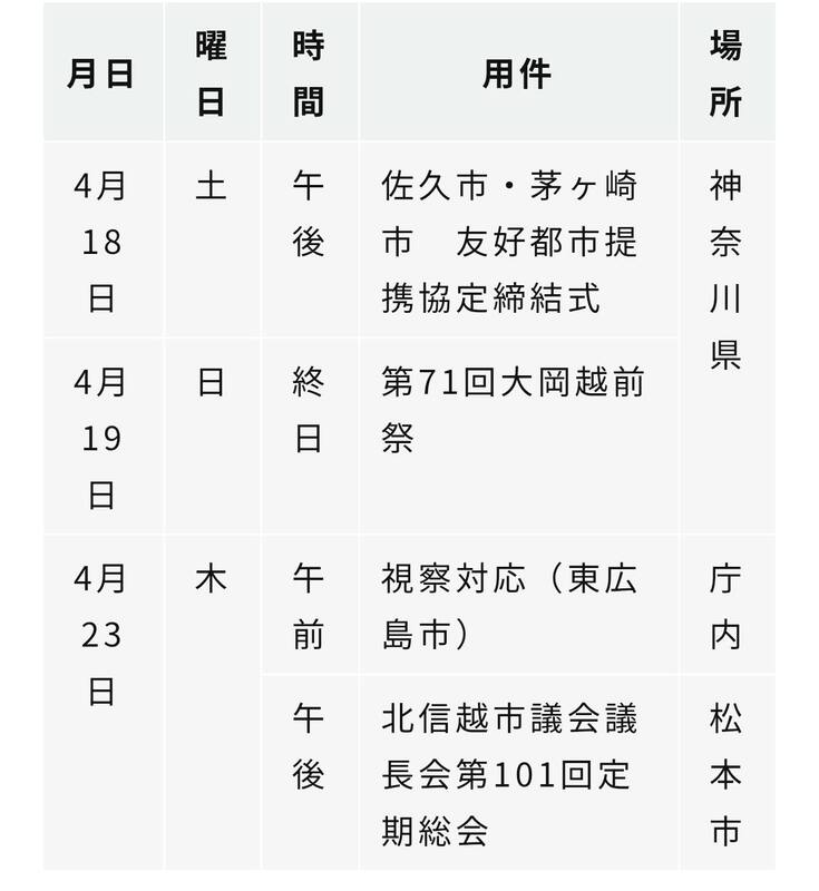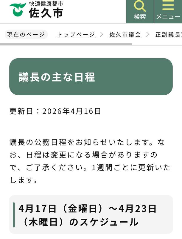【#佐久市議会「議長」の主な公務日程】は、議会ホームページにて、1週間ごとに更新されています😊