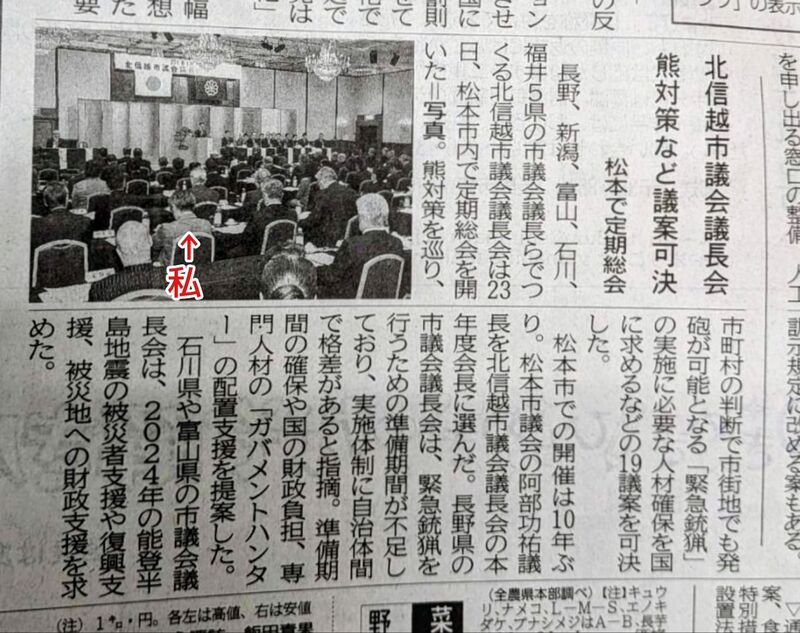 🌞【第101回 #北信越市議会議長会「定期総会(長野県・新潟県・富山県・石川県・福井県、計69市)」】が松本市で開催され、#佐久市議会「議長」として出席し、その様子が今朝の #信濃毎日新聞 に掲載されました📰😀‼️