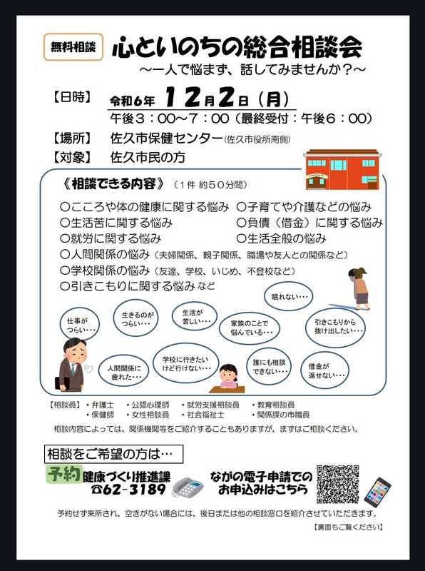ホーム>政党・政治家>清水 秀三郎 (シミズ ヒデサブロウ)>#佐久市【心といのちの総合相談会】開催のお知らせ📣一人で悩まず、相談してみませんか❓️「相談無...