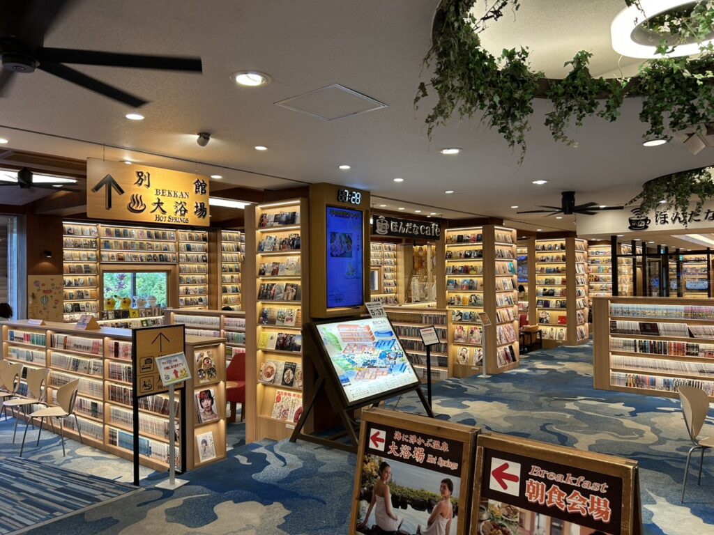 今回、島原で宿泊したホテルもまさにその一つで、玄関からロビー、レストランに至るまで所狭しと本が並び、思わず足を止めてしまう空間が広がっていました。