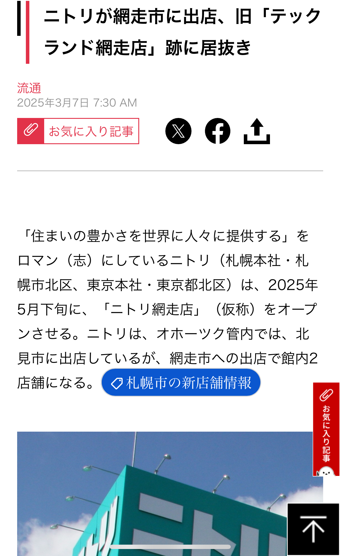 ニトリが網走市に出店、旧「テックランド網走店」跡に居抜き https://hre-net.com/keizai/ryutu/81605/