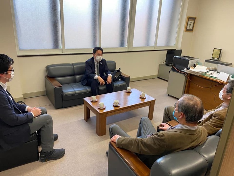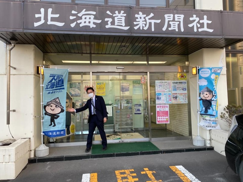 【北海道新聞北見支社に春のごあいさつ。支局長、報道部長、政党担当記者の3人でご対応いただきました。】
