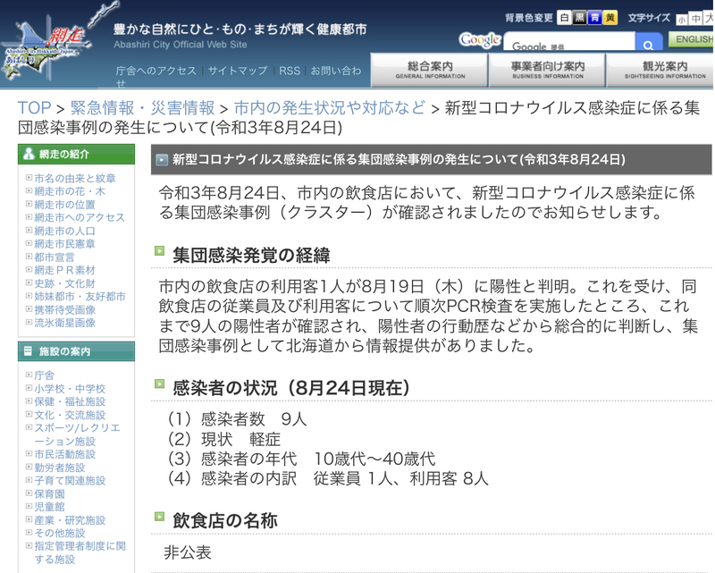 ホーム>政党・政治家>平賀 たかゆき (ヒラガ タカユキ)>8/24網走市内の飲食店における新たなクラスターの発生について